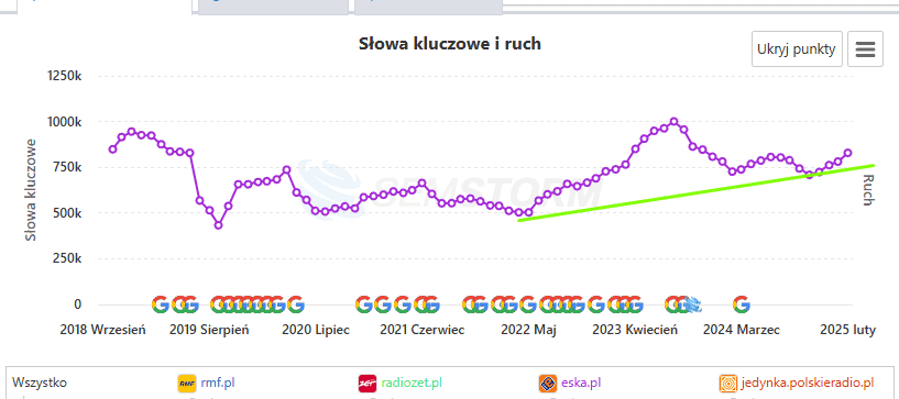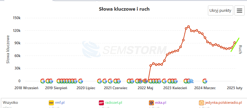 Pierwsza z dwóch stacji, której widoczność nie spada, ale rośnie w Google.
