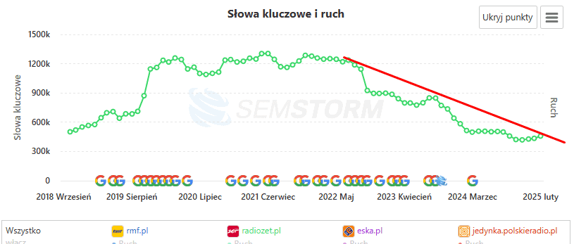 Ale, jak widać, strona RMF FM leci mocno w dół od paru już ładnych lat, przypomnę wykres