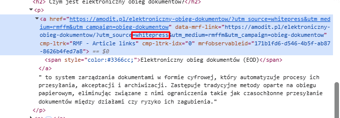 Jednak, jak widać, nie masz wpływu na to, jak osoba kupująca link go oznaczy – w momencie, kiedy redaktor RMF FM wrzucił na stronę dokładnie to, co klient giełdy linków wskazał, to poprzez utma, w którym znajduje się nazwa giełdy linków, podał „na tacy” Google informację, że w procesie pozycjonowania wskazana firma kupuje linki pozycjonujące.