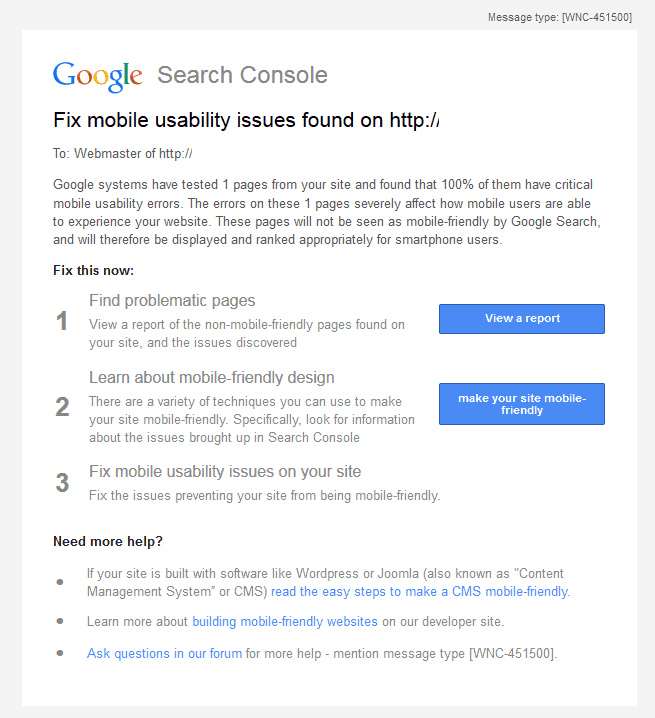 Dzisiaj Google zaczęło rozsyłać od popołudnia nowy rodzaj powiadomień – kolejny ukierunkowany na dostosowanie stron pod smartfony. Powiadomienie jest niestety rozsyłane w wersji językowej angielskiej – szkoda, że Google często wypuszcza ostatnie nowości bez ich spolszczenia…)