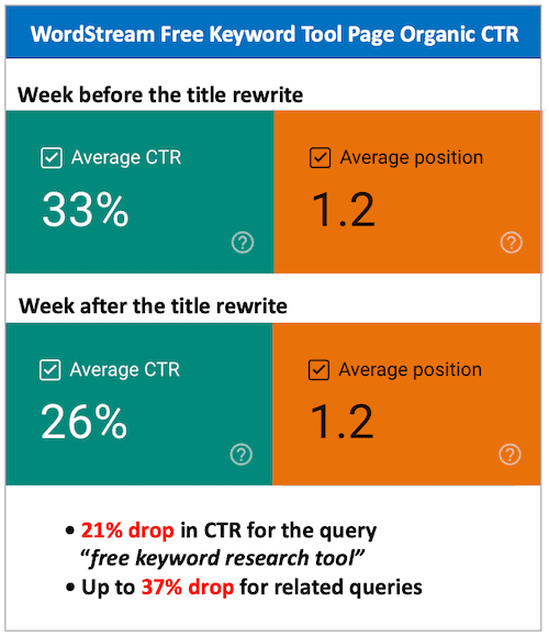 Poniżej opis case’a, który pokazuje wyraźnie, że zmiana domyślnego title na taki, który Google „uważa za istotne” nie oznacza automatycznie, że nasza strona zyska więcej ruchu z wyników wyszukiwania – wręcz przeciwnie, można dużo stracić.