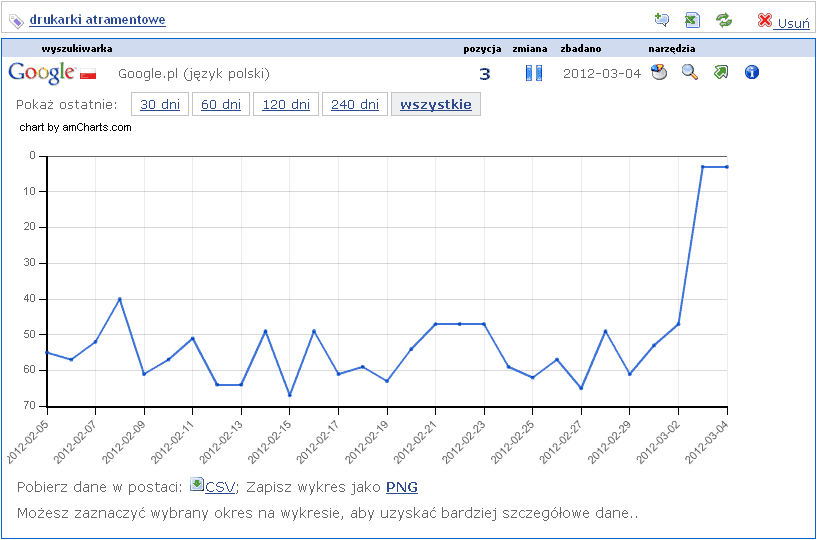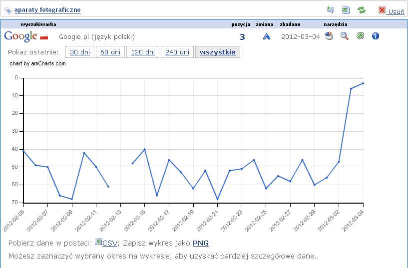 zaś na takie frazy, jak aparaty fotograficzne czy drukarki atramentowe jest w TOP3.