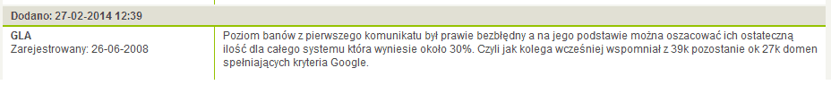 Nie bez powodu napisałem „środkiem końca”. Początkiem końca był dzień 3 lipca 2013, kiedy to na wiele domen zostały nałożone ręczne filtry za linkowanie ich ze źródeł o niskiej jakości (precle, katalogi, fora, swle, tzw. „marketing szeptany”). To, co odróżniło akcję od wcześniejszych tego typu działań była niewątpliwie jej skala – bardzo dużo stron otrzymało wtedy powiadomienia w sekcji Działania Ręczne w Narzędziach. Poza tym była to akcja wymierzona stricte w nienaturalne linki – a dokładniej mówiąc w strony, które używały takich linków w procesie pozycjonowania.