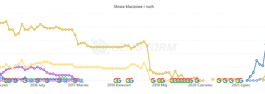 a tymczasem strona, któa znajduje się w raporcie SEO, na której znajduje się link do Twojej witryny, prezentuje się bardzo słabo, a do tego SEMSTORM pokazuje brak ruchu (lub perturbacje w widoczności), to niestety, ale linki, jakie są dla Ciebie pozyskiwane, są nic nie warte.