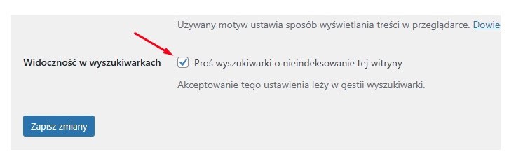 Na końcu, jak wszystko jest w porządku, musi zrobić jedną, drobną rzecz – odznaczyć opcję „Proś wyszukiwarki o nieindeksowanie tej witryny”.