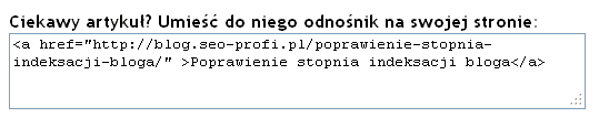 Ostatnią wtyczkę, której użycie dzisiaj rekomenduję, jest Please Link 2 Me. Efektem jej użycia jest wyświetlanie się pod wpisem linka źródłowego do bieżącego wpisu, w formacie HTML, który po wklejeniu na stronie przyjmie postać linku
