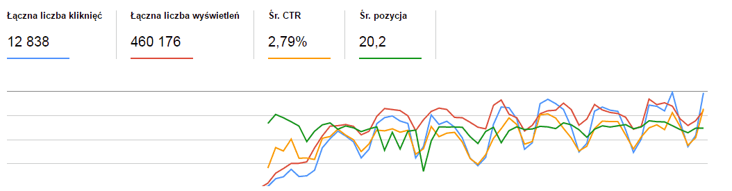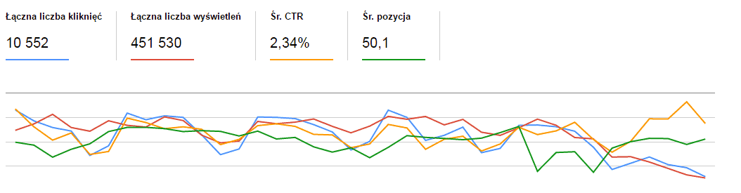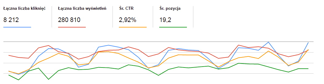 Ostatnie 31 dni przed migracją w Search Console wyglądało następująco
