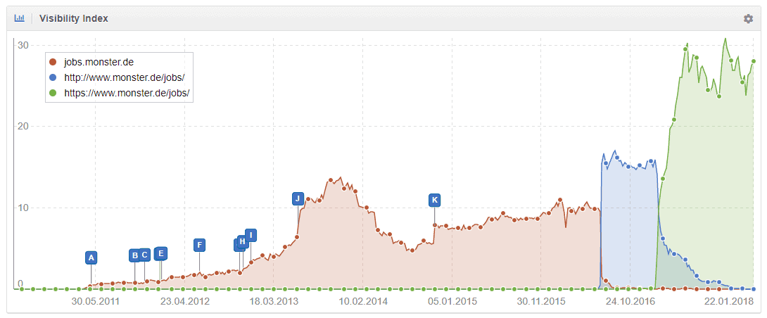Mam jednak pewną wątpliwośc tutaj – nie spotkałem się z takim bonusem dla domeny w związku z przejściem na https. Bardziej skłaniam się ku temu, że przykład 3 to de facto rozbudowany przykład 2, gdzie widzimy, że dodatkowy wzrost nastąpił po pewnym czasie.