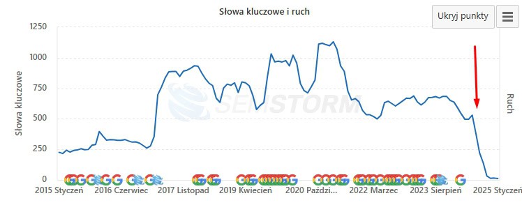 Najnowszy case dotyczył nagłego wypadnięcia witryny z Google.