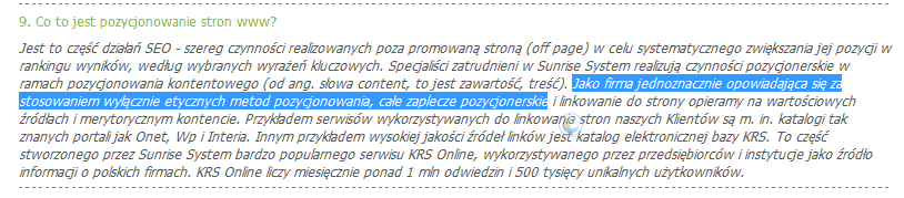 Taka jedna z wielu „czarnych owiec” firm SEO nastawionych wyłącznie na własny zysk a co najgorsze coraz więcej firm idzie w ich ślady.