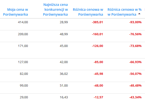 Jednak to nie wszystko – w Panelu można obserwować zmiany poziomu cen, optymalizować marże wiedząc np., że mamy bardzo tanio wystawione produkty (podwyżka o kilka procent w sytuacji, gdy konkurent jest droższy o np. 30% nie powinna negatywnie wpłynąć na poziom sprzedaży).