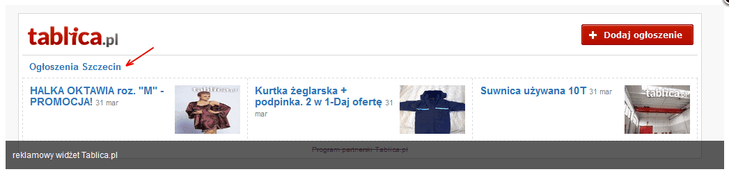 Widget można pobrać w momencie zakończenia procesu dodawania ogłoszenia jak również w Mojej Tablicy w menu ogłoszenia. Z naszych obserwacji wynika, że zdecydowana większość osób korzystających z widgetu promuje na swoich stronach swoje własne ogłoszenia.