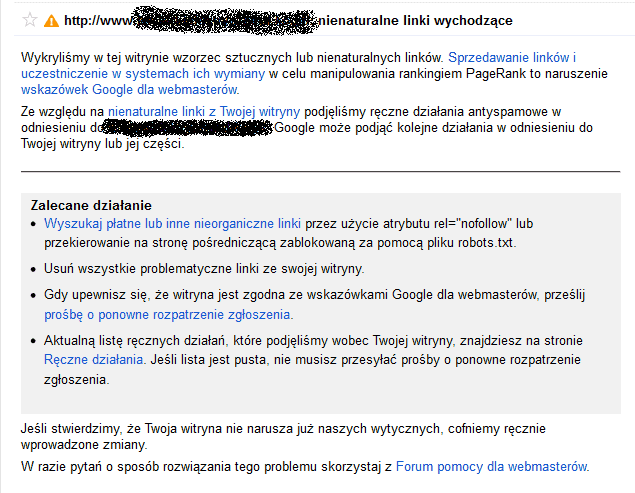 Narzędzia Google - komunikat o nienaturalnych linkach wychodzących ze strony